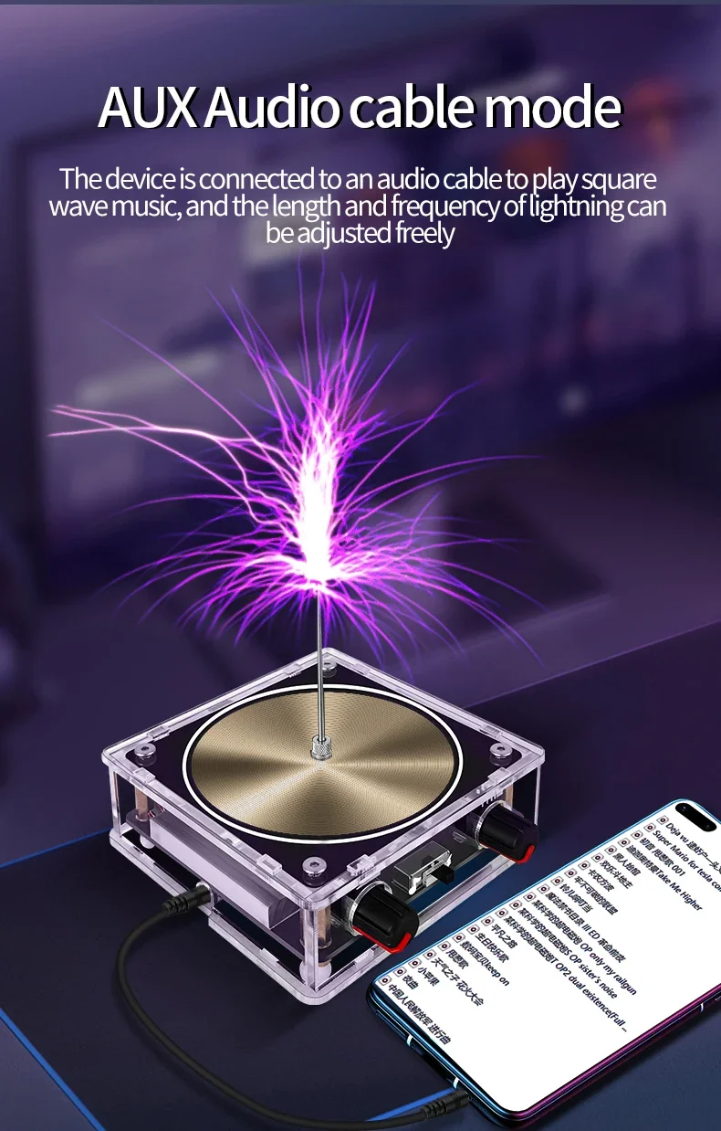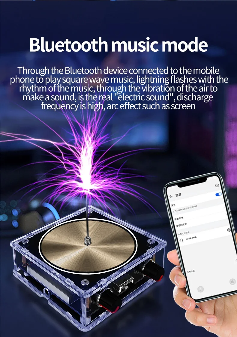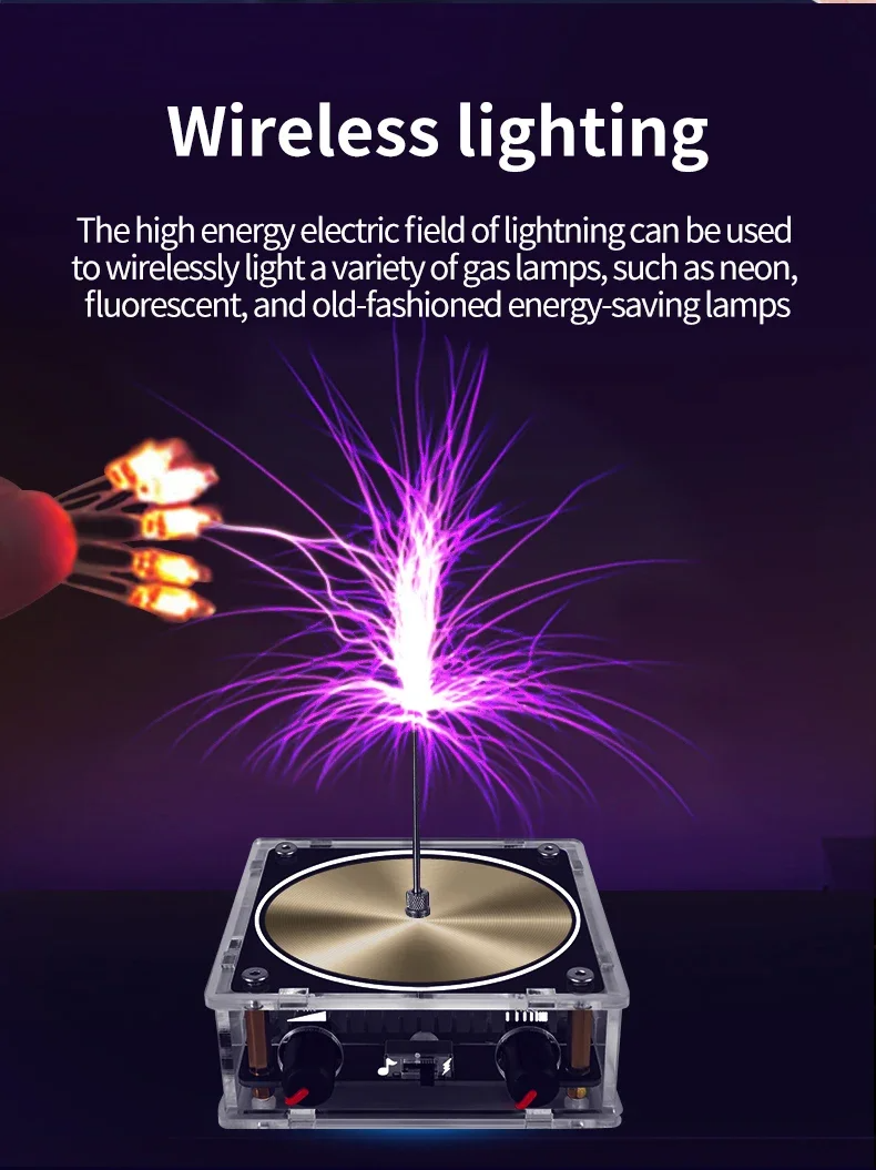 يتميز جهاز تسلا الموسيقي هذا بخاصية البث اللاسلكي ومكبر الصوت، ويمكنه إضاءة أنبوب غازي وأنواع مختلفة من الفقاعات. إنه أداة تعليمية مثالية لتحفيز اهتمام الطلاب بالعلوم، وهو أيضًا هدية رائعة.